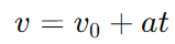 - 여기서 'v'는 최종 속도, 'v₀'는 초기 속도, 'a'는 가속도, 't'는 시간을 나타냅니다.